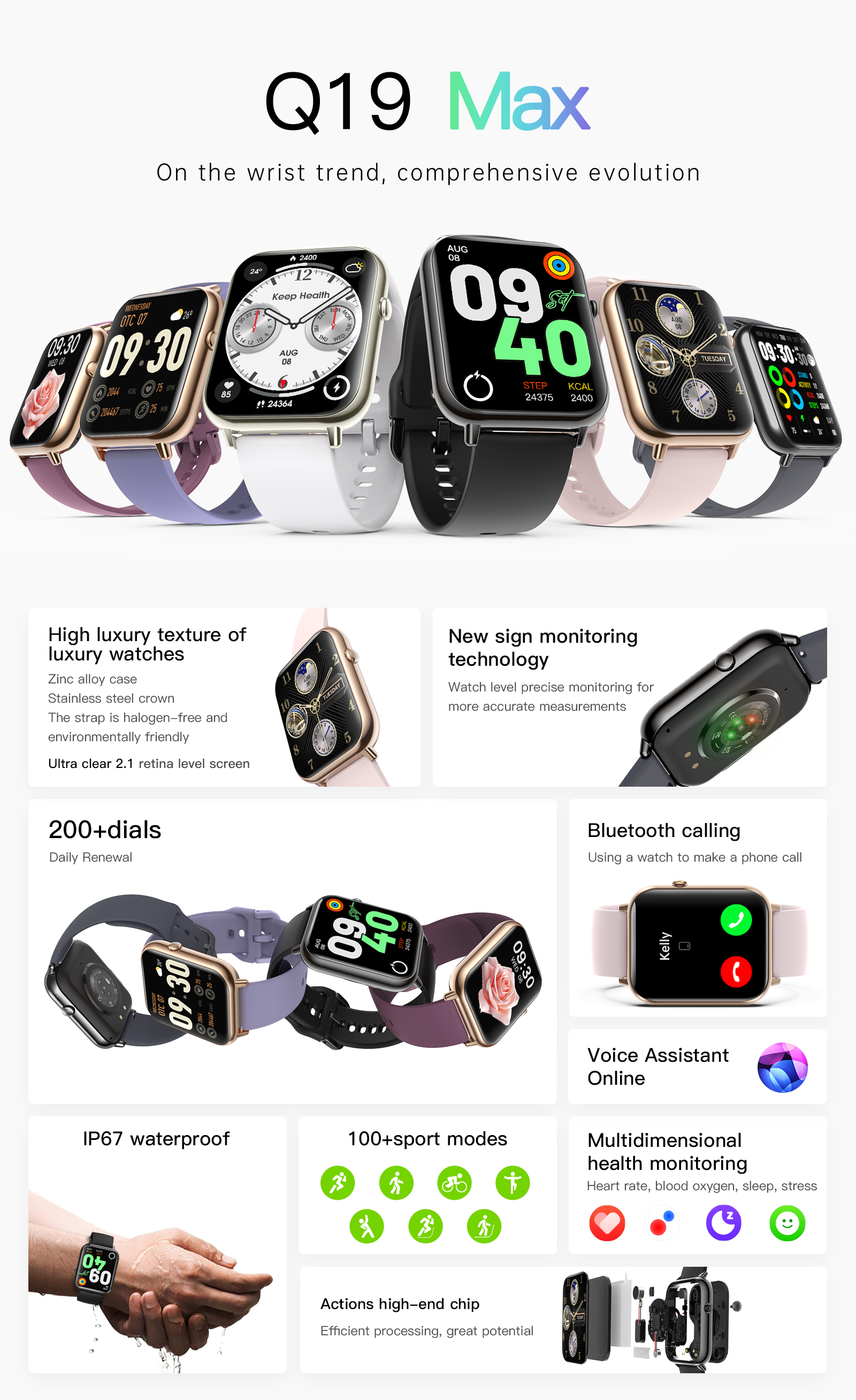 Q19 Multifunction Sports Mode, Waterproof, Heart Rate Monitoring, High-end New Model, Bluetooth Call